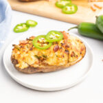 You can bake the potatoes using any method you prefer. The oven, microwave or air fryer all work well.For every six potato halves, you want to serve you will want to cook 4 potatoes, which will allow you to fill them nice and full. Use your judgment for how many peppers to use depending on how spicy you want the potatoes. If you want the potatoes to be spicier, you can leave the seeds instead of removing them. 'With the bacon, cheese and salted butter, I do not find these potatoes need any additional salt, but you can add salt to taste if you prefer.