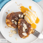 Quick and easy air fryer pears with a sweet, brown sugar caramel make a delicious and decadent dessert. These air-fried baked pears match well with vanilla ice cream and caramel sauce.