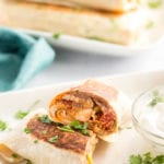 Roll the burritos up by folding the 2 sides about an inch over the filling, then fold the bottom half of the tortilla over the filling and roll to close.